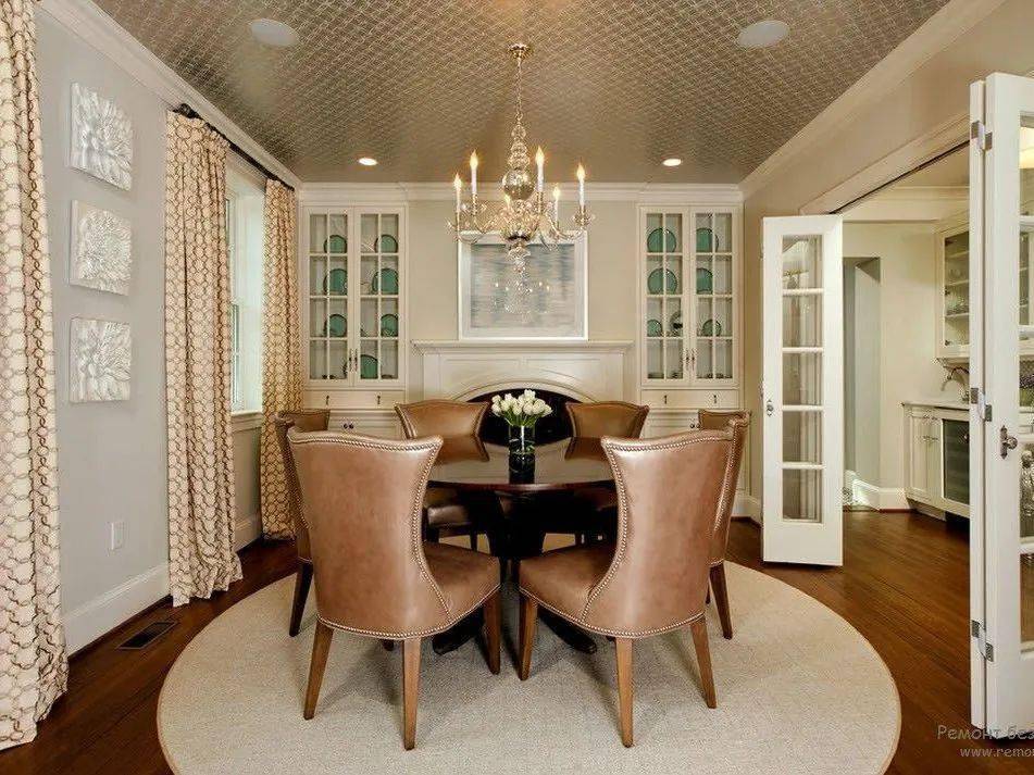 房间按法度气概拆修时,墙面饰面材料多采用木头、用餐区一般选用有设想感的椅子和餐桌,