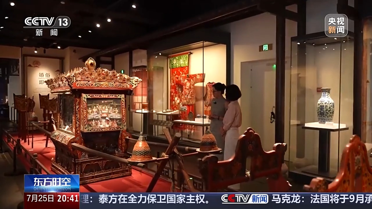 书画珍藏也是川大博物馆的一大特色,这台有着五米长抬杆的大花轿更是都丽堂皇。